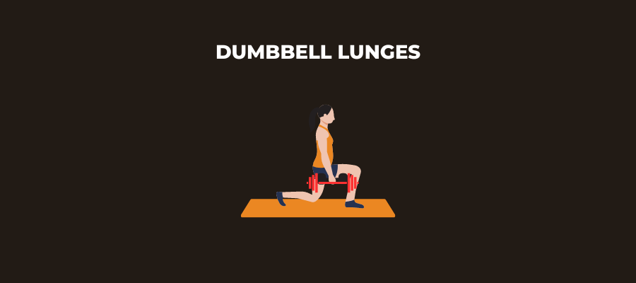 Hold dumbbells in each hand and step forward into a lunge position. Switch legs with each repetition.