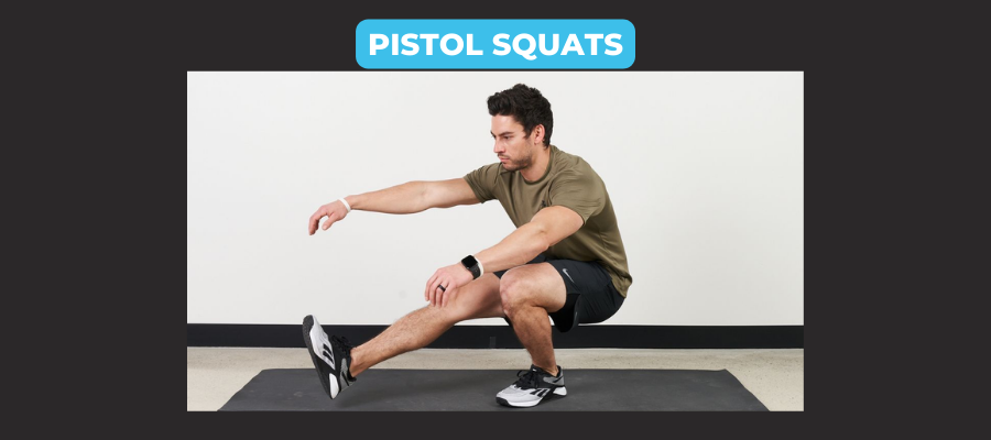 - Pistol Squats – 3 sets of 6-8 reps per leg